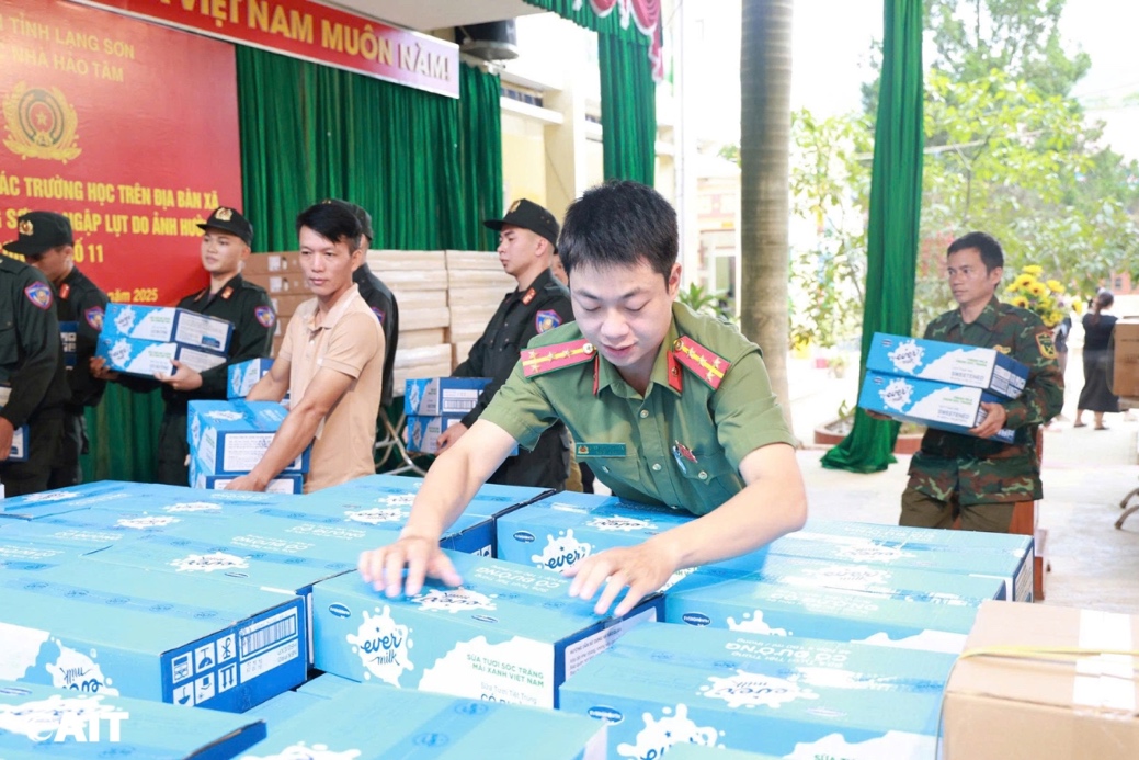 CÔNG ĐOÀN AIT CÙNG CÔNG AN TỈNH LẠNG SƠN TRAO QUÀ HỖ TRỢ CÁC TRƯỜNG HỌC VÙNG LŨ