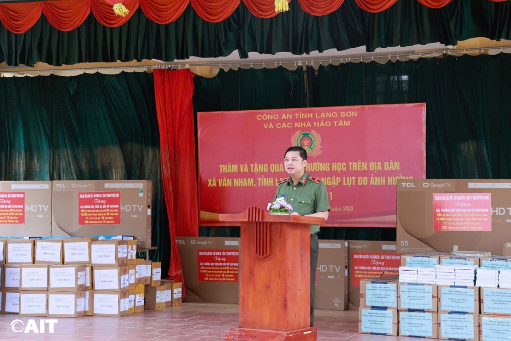 Phát biểu tại buổi trao tặng, đồng chí Giám đốc Công an tỉnh Lạng Sơn đã thay mặt công an tỉnh bày tỏ lời cảm ơn đối với sự đồng hành của các đơn vị, doanh nghiệp, trong đó có AIT. Đây là nguồn động viên lớn giúp lực lượng thực hiện tốt hơn công tác an sinh xã hội và lan tỏa tinh thần nhân ái đến với cộng đồng. Sự phối hợp lần này không chỉ là hoạt động hỗ trợ nguồn xã hội hóa, mà còn thể hiện sự gắn bó giữa doanh nghiệp và lực lượng vũ trang trong sứ mệnh chung hướng về nhân dân, vì cuộc sống bình yên và hạnh phúc.